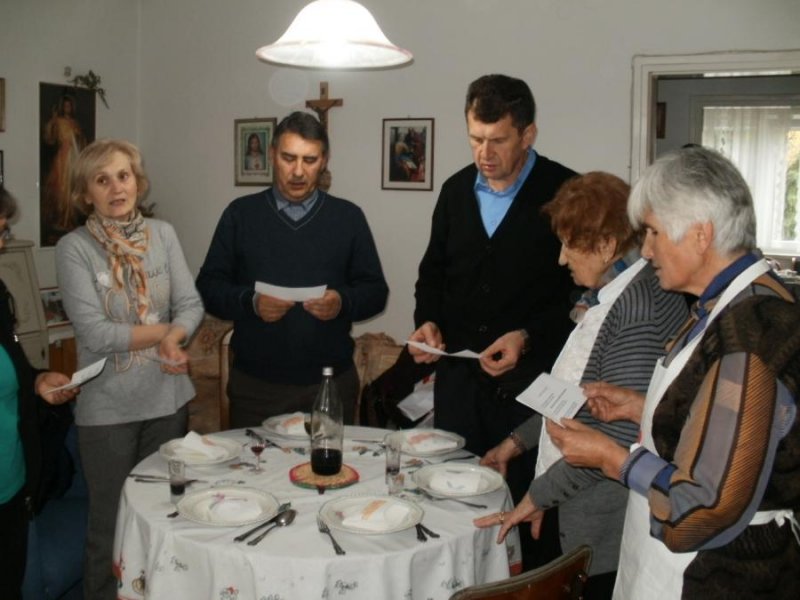 Poslije mise radosna srca došli smo u naše redovito okupljalište tj. u moj stan koji je bio posve dovoljan da se smjestimo i uz prostrte stolove osjećamo veoma blisko (ne samo zbog skromnog prostora) te prvo uz pjesmu Kristu Kralju, a potom uz blagoslov, uživamo u posve običnom, ali odličnom tradicionalnom ručku.