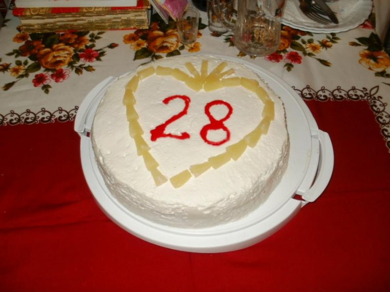 Nakon tog potpunog predanja Bogu, dobro je došla okrjepa tijela koju nam je priredila naša draga Terezija - prekrasnu tortu koju je ukrasila brojkama 28. tj. 28.obljetnica. Začudo, bilo je točno toliko komada torte koliko je nas bilo!